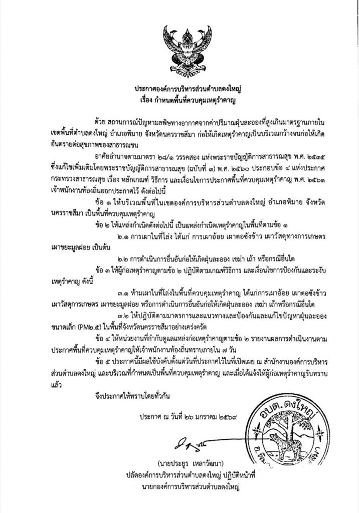 ประกาศองค์การบริหารส่วนตำบลดงใหญ่ เรื่อง กำหนดพื้นที่ควบคุมเหตุรำคาญ 28/01/256928/01/2026 admin ข่าวประชาสัมพันธ์ FacebookFacebookXXLINELine
