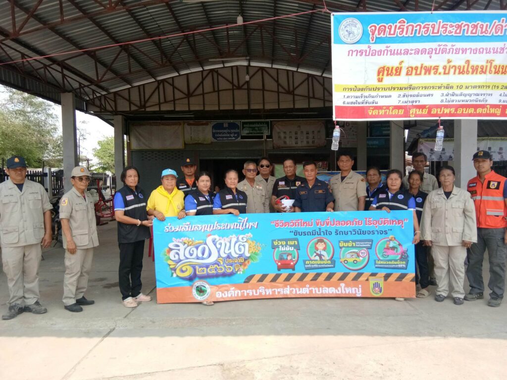 วันที่ ๑๑ เม.ย.๒๕๖๖ เวลา ๐๙.๐๐น. นายสมพิศ ขวัญมั่น นายกองค์การบริหารส่วนตำบลดงใหญ่ ลงพื้นที่ตรวจเยี่ยม จุดบริการประชาชน ป้องกันและลดอุบัติเหตุทางถนน ๗ วัน ทั้งหมด ๒๐ หมู่บ้าน ในช่วงเทศกาลสงกรานต์ ๒๕๖๖ ระหว่างวันที่ ๑๑ – ๑๗ เม.ย.๒๕๖๖ โดยมี เจ้าหน้าที่ฝ่ายปกครอง, เจ้าหน้าที่องค์กรปกครองส่วนท้องถิ่น, เจ้าหน้าที่สาธารณสุข และอาสาสมัครภาคประชาชน(อาสาสมัครป้องกันภัยฝ่ายพลเรือน และจิตอาสา) ปฏิบัติหน้าที่ด้วยความเข้มแข็ง รายงานเหตุการณ์ทั่วไปปกติ พร้อมกับได้มอบสิ่งของสนับสนุนการปฏิบัติงานเพื่อเป็นขวัญและกำลังใจแก่ผู้ปฏิบัติงาน ครั้งนี้