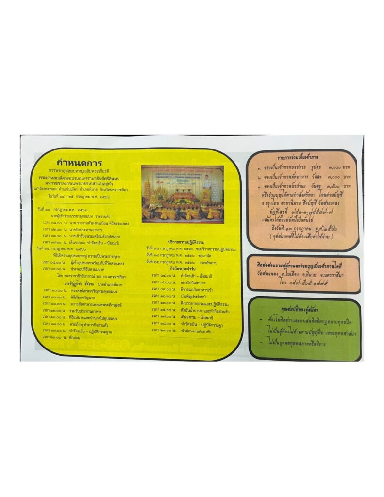 – เจ้าภาพบวชพระ รูปละ 3000 บาท