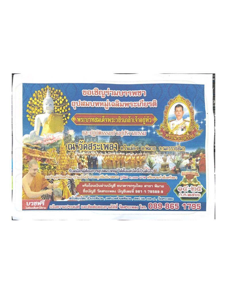 หรือร่วมทำบุญตามกำลังศรัทธา หรือโอนผ่านบัญชีกรุงไทย สาขาพิมาย