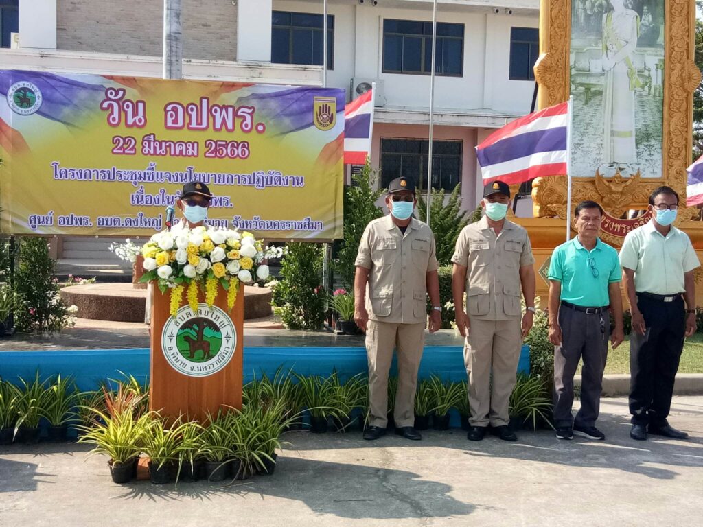 วันที่ ๒๒ มีนาคม ๒๕๖๖ นายสมพิศ ขวัญมั่น นายกองค์การบริหารส่วนตำบลดงใหญ่ เป็นประธานในพิธีเปิด โครงการประชุมชี้แจงนโยบายการปฎิบัติงานแก่ อปพร. และวัน อปพร. เพื่อชี้แจงนโยบายการปฎิบัติงาน แก่ อปพร.และเสริมสร้างความเข้มแข็งของชุมชนในการป้องกันภัย เพื่อยกย่องและประเมินเกียรติคุณ อปพร.ที่เสียสละอุทิศตนปฎิบัติงานเพื่อสังคมและประเทศชาติมาอย่างต่อเนื่อง ทั้งนี้ถือเป็นกิจกรรมในการขับเคลื่อน อปพร. ให้เป็นกำลังสนันสนุนภาครัฐในการดำเนินงานป้องกันภัยเชิงรุก และจัดการภัยพิบัติยั่งยืน รวมถึงเป็นพลังสำคัญในการสร้างความปลอดภัยในสังคมไทย ประกอบกับ ปี ๒๕๖๖ ศูนย์ อปพร.กลาง กระทรวงมหาดไทย ได้ประกาศผลให้สมาชิก อปพร. ศูนย์ อปพร. อบต.ดงใหญ่ ได้รับคัดเลือกเป็นสมาชิก อปพร.ดีเด่น จำนวน ๔ คน โดยมี สมาชิก อปพร. อบต.ดงใหญ่ เข้าร่วมกิจกรรมอย่างพร้อมเพียงกัน ณ ที่ทำการองค์การบริหารส่วนตำบลดงใหญ่